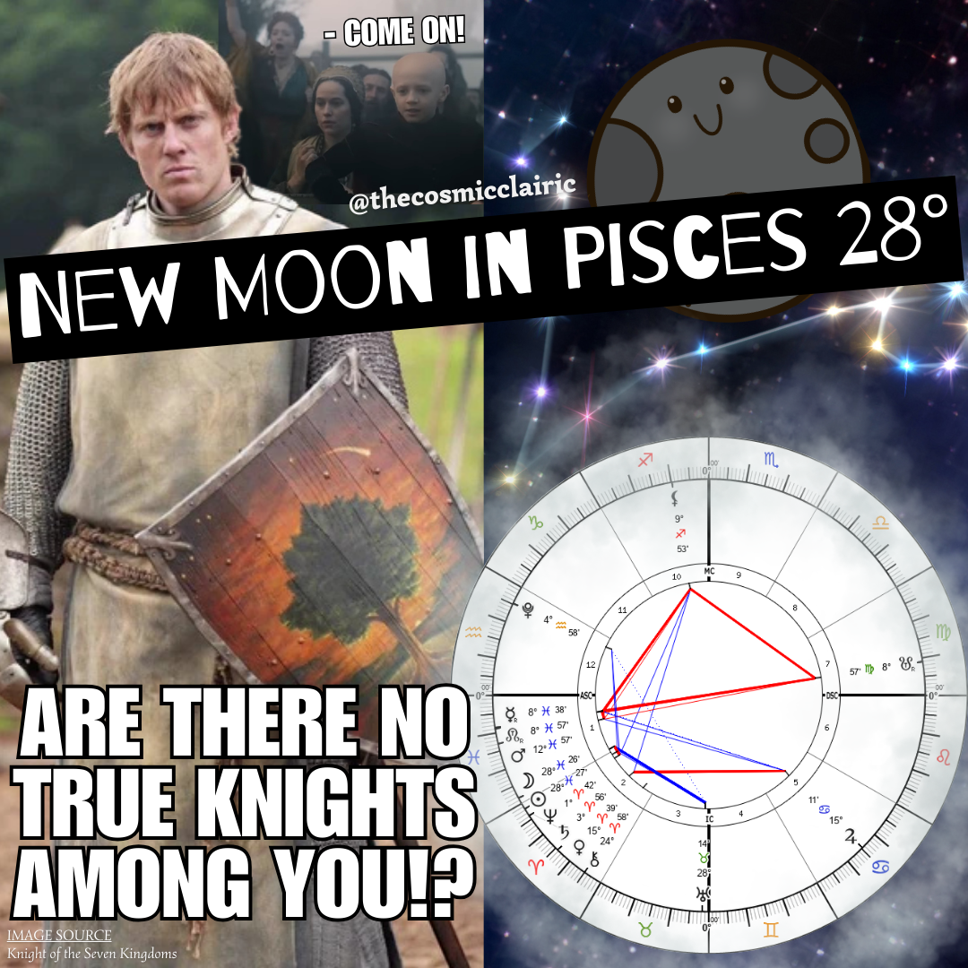 For this packed Piscean new moon, let’s unpack some significant symbolism that merges our current collective with the Knight of the Seven Kingdoms.